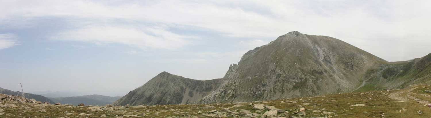 Fotografia feta al peu de la cafeteria de les Marmotes, a Vallter. Al davant els dos Grans de Fajol i el Coll de la Marrana.